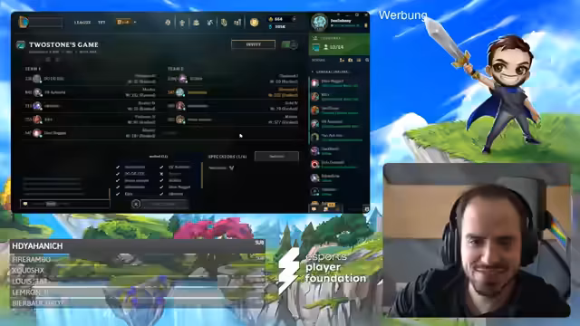02:17:41Phil und Johnny dürfen ihre Teams wählen. Phil beginnt und wählt Krokoboss ins Team. Franzi wird als Nächstes gewählt, gefolgt von Nicoletta als Female Upcoming Jungler und Lea. Die Teamaufteilung wird geklärt, wobei eine Seite nach links und die andere nach rechts geht. Alex und Toni werden ebenfalls in die Teams gewählt. Es wird entschieden, dass das Spiel zum Spaß ist, aber trotzdem bis zum Weinen gespielt werden darf. Die Teams einigen sich auf die Rollenverteilung, wobei Lea Support spielen möchte und Adix den Jungle übernimmt. Franzi und Lea teilen sich die Botlane, wobei Lea Lulu spielen wird. Es wird vor Ego-Problemen gewarnt, die in solchen Spielen auftreten können.