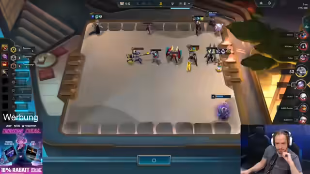 00:03:44Während des Streams spielt der Streamer TFT (Teamfight Tactics) und diskutiert verschiedene Strategien. Er experimentiert mit verschiedenen Einheiten wie Cypher, Draven und Galio. Der Streamer analysiert seine Aufstellung und Entscheidungen, während er über die Vor- und Nachteile verschiedener Gegenstände spricht. Er beschäftigt sich auch mit dem Thema Leveln und wie man in verschiedenen Spielsituationen reagieren sollte.
