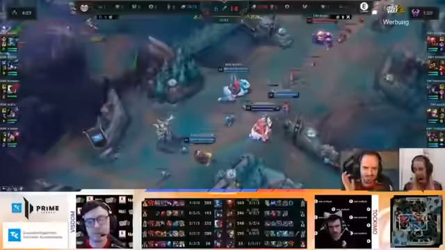04:10:22Während des Spiels werden mehrere Teamkämpfe und deren Auswirkungen auf den Spielverlauf analysiert. Rebel überzeugt mit starken mechanischen Fähigkeiten und einem klugen Baiten mit dem Klon. Die Kommentatoren diskutieren die Rolle von Random als treibende Kraft der Partie und die Herausforderungen, die sich für die Bot-Lane ergeben. Es werden verschiedene Play-Stile und ihre Wirksamkeit bewertet.