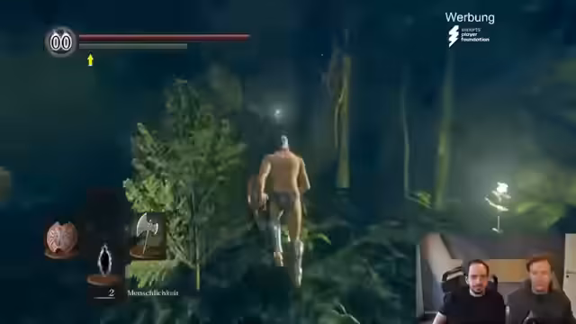 00:13:46Der Tutorial-Boss wird erreicht und besiegt, wobei die geringe Ausdauer des Charakters und die Notwendigkeit, jeden Angriff genau zu planen, thematisiert werden. Es wird überlegt, ob man die Menschlichkeit nutzen soll, was aber aufgrund möglicher Invasionen verworfen wird. Es wird der weitere Weg erkundet, wobei der Fokus auf dem Einsammeln von Seelen und dem Finden des richtigen Pfades liegt. Es wird festgestellt, dass man sich leicht verirren kann und dass Tipps von Zuschauern unerlässlich sind. Es wird der klassische Dark Souls-Fehler erwähnt, dass man sofort ins Totenreich gehen kann, wenn man einen Fehler macht. Es wird überlegt, ob man den Friedhof als ersten Schritt empfehlen würde. Es wird festgestellt, dass sterben leider keine Option ist, da man ja no death runen muss. Es wird überlegt, wie man Skelette am besten killen kann. Es wird überlegt, welche Level man auf jeden Fall braucht, um Waffen führen zu können, die aber erstmal irrelevant sind. Es wird festgestellt, dass die Wahrscheinlichkeit, dass man an einem dummen "Ich bin runtergefallen" Def stirbt, einfach hoch ist. Vielleicht sogar zu hoch.