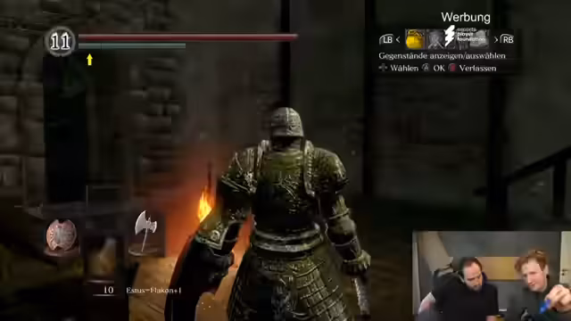 00:00:05Der Stream startet mit dem Bekenntnis des Streamers, kaum Erinnerungen an Dark Souls 1 zu haben. Er wirkt orientierungslos und verunsichert bei der Steuerung und im Kampf, vergisst grundlegende Mechaniken wie das Blocken mit dem Schild und muss sich von der Community erklären lassen. Trotzdem gelingt ihm das Erreichen des ersten Bonfires, das als überraschender Erfolg gewertet wird. Die Anfangsphase ist von einer Mischung aus frustrierten Ausbrüchen und dem Versuch, die Kontrolle über den Charakter zurückzugewinnen geprägt.