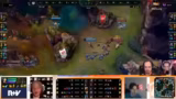 06:36:16Dung Dynasty hat die Drake Soul und bedroht nun die Turrets, während Zenlo gegen Random den kürzeren zieht. Random wird zurückgesetzt und das Team zieht sich in den Tribush zurück, als TPs auf beiden Seiten erscheinen. Obwohl Reptile einen Kill gegen Random holen kann, beschwört Dung Dynasty den Baron Nashor. Dies zwingt Kaufland zu einem unkoordinierten Rückzug und die Hangry Knights können den weiteren Ansturm nicht mehr abwehren. Der Baron Buff stärkt Dung Dynasty für das finale Vorgehen gegen die Base.