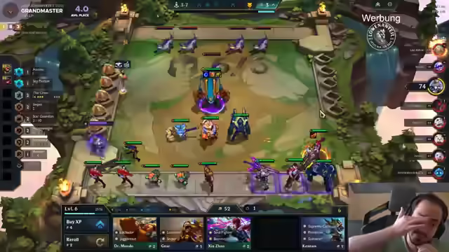 01:15:21Die Community wird kritisiert, da sie dem Spiel keinen Gefallen tut, wie sie über TFT redet. Es wird überlegt, ob Nafiri über Sek gespielt werden soll. Die Entscheidung, die Orgmente nicht auszuwählen und eine Winstreak zu halten, wird getroffen. Es wird festgestellt, dass Cardihydro gespielt wird, was auch eine Option ist. Die Damage von Kenobi wird als gut bewertet. Es wird überlegt, ob Rabadons oder Archangel genommen werden soll. Lucian 3 wird zufällig erhalten, was aber nicht als optimal angesehen wird. Es wird überlegt, was als Augment kommt, und gehofft, dass es etwas 3-Cost-3-Romassiges ist. Es wird kommentiert, dass eine Seite wechseln, um schlechter zu stehen, hilarious ist. Der Erhalt eines Full-Belt-Overflow-Zirtens wird kommentiert. Es wird festgestellt, dass der Gegner Mentor 4 wegen Veteran-Roll auf der Jena hat. Es wird festgestellt, dass der Jarvan nichts durchbekommt, und die Unit als scheiße bezeichnet. Es wird überlegt, ob drei Heavyweights gespielt werden sollen.