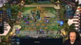 01:13:21Nach einer Runde mit 'Path of Blades', die als 'Ausgeburt der Hölle' und buggy beschrieben wird, wird die Strategie angepasst. Der Streamer wechselt zu einer Shadowhides-Linie und diskutiert die Vor- und Nachteile von Void als Startkomposition. Die Entscheidung, nicht Void zu spielen, resultiert aus den kontroversen Komponenten und dem Wettbewerbsdruck. Der Fokus verschiebt sich zu flexibleren Builds und Item-Bewertungen.