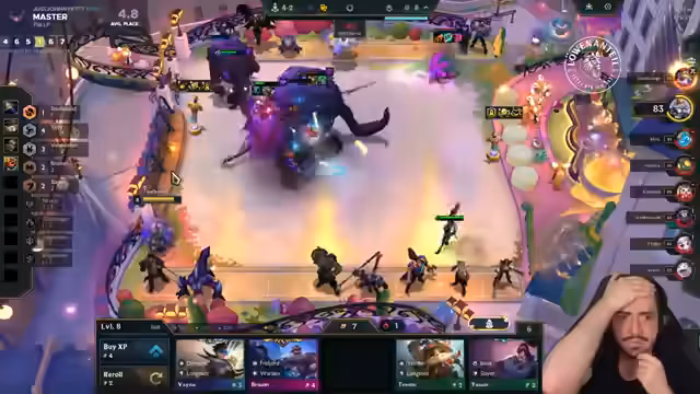 01:36:09Das Spiel spitzt sich zu, der Streamer plant, auf Level 9 zu gehen, was jedoch durch begrenzte Ressourcen erschwert wird. Es werden Units wie Skarner und Malphite in Betracht gezogen, um die Economy zu stabilisieren. Der Endgame-Bauevolviert zu einem Safe-Board auf Phoney 2, wobei der Weg dahin als stressig und fehleranfällig beschrieben wird. Das Ziel bleibt, den T-Rex-Spieler zu besiegen.