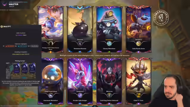 00:38:54Im weiteren Verlauf trifft der Streamer auf Spieler, die einen dominanten T-Rex-Beschwörer spielen. Die Units des Gegners gelten als sehr stark und sorgen für Schwierigkeiten. Der Streamer untersucht alternative Pfade wie Shyvana-Tuster, erkennt aber, dass frühes Zug-Cutten nicht schlimm ist. Es wird die aktuelle Meta-Erwähnung, dass Zellen zu OP sind, aber der Streamer widerspricht dem. Ein früher Level-up in 3-2 wird als nicht energisch genug kritisiert.