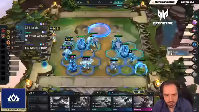 07:02:12In einem weiteren Spiel experimentiert der Streamer mit einem Xerath-Carry, der seinen üblichen Jinx-Carry ersetzt. Das Board ist instabil und erzwängt häufige Wechsel der Träger-Einheit. Trotzdem findet er diese unkonventionelle Herangehensweise spannend. Er versucht, mit seiner untypischen Komposition und einem gut platzierten Xerath die nötige Schadensausbeute zu erzielen, um die Runden zu gewinnen.