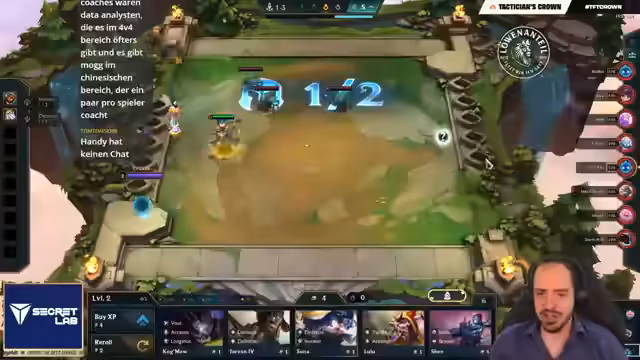 05:11:29Die Kommentatoren analysieren die taktischen Züge der verbliebenen Spieler wie Revan und Mori. Es werden Entscheidungen über Items, Champion-Setups und Wirtschaft im Fokus. Ein Spieler macht einen merklichen Fehler und verschwendet Gold, während andere wie Elia und Mori sehr clevere und kalkulierte Moves einsetzen. Das Spiel ist voller strategischer Tiefe und unvorhergesehener Momente.