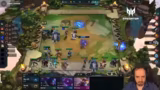 03:15:58Nach einer verlorenen Runde werden taktische Anpassungen vorgenommen. So wird das Positioning geändert, um den gierigen Xin Zhao aus der Front zu nehmen und durch einen Bukong mit Warmox und Everfrost Emblem zu ersetzen. Es kommt zu einem katastrophalen Fight, bei dem die Lux-Laser nur die Backline treffen, während ein Garen ungeschlagen bleibt und den Sieg für den Gegner sichert.
