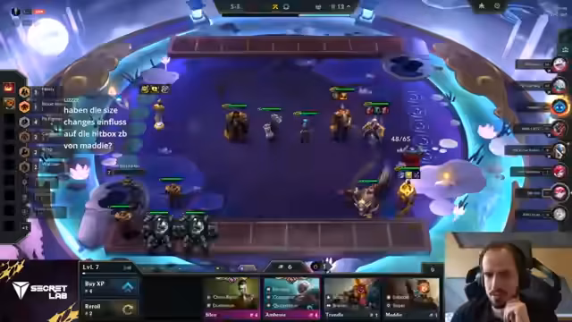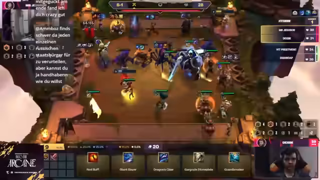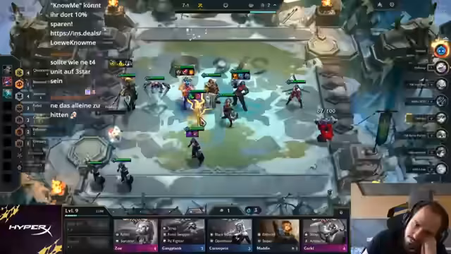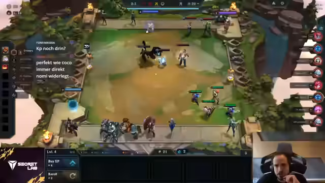 03:00:00Ein Spieler namens Tartmann verliert übertrieben schnell, was seine Position gefährdet. Die Analyse konzentriert sich auf eine Partie, in der ein Spieler strategische Fehler macht, indem er einen Heimerdinger nicht aufnimmt und nicht sechs Visionary-Champions aufstellt, was auf einem hohen Niveau ein fataler Fehler ist. Dies führt zum Verlust des Spiels. Ein anderer Spieler, Koko, baut stattdessen auf eine starke Jace-Kombi mit Artillerist, die laut Streamer unrealist hohe AD-Werte erreichen kann und damit das Potenzial für ein sehr spätes Spiel hat.