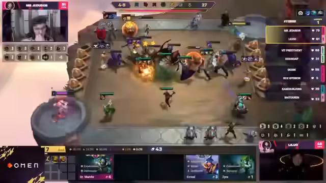 05:23:40Das letzte Game des Tages startet mit hochspannenden Einblicken. Deicy ist sicher in der Top 8, während Coco und Tartman starke Chancen haben, den Sprung zu schaffen. Tartman ist dabei besonders hervorzuheben, da er mit nur 58 Punkten und einem Rückstand von vier Punkten auf einen Top-7-Platz noch alles gewinnen kann. Das Spiel verspricht sehr riskante Plays, wie zum Beispiel das Spielen eines 'Visionary' Augments, das entweder zu einem Top-4-Ergebnis oder einem achten Platz führen kann, abhängig von der Performance.
