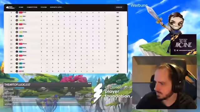 00:00:00Der Stream beginnt zur TFT Weltmeisterschaft Tag 2, mit Fokus auf dem letzten deutschen Vertreter Kevin Parker. Nach dem ersten Tag befindet er sich auf Platz 31 und benötigt in den nächsten beiden Spielen den Einzug in die Top 24. Dabei hat er einen Punkterückstand und muss eine Aufholjagd starten. Die Lobby des ersten Games wird als sehr hart eingeschätzt, mit starken Konkurrenten wie Iron Box und Tartmann, was die Aufgabe zusätzlich erschwert. Kevin Parker selbst hat nach Tag 1 Unzufriedenheit geäußert und Nervosität zugegeben.