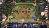 03:16:40Der Streamer befindet sich in einer schwierigen Mid-Game-Phase und erkennt, dass sein aktuelles Board keine Siegchance bietet. Die Analyse ergibt, dass eine All-in-Strategie auf Ash in früheren Runden wahrscheinlich besser gewesen wäre. Der Plan wird auf Level 9 geändert, auch wenn die Realisierung eines starken Boards unwahrscheinlich scheint. Die Präsentation eines starken gegnerischen Boards mit unendlichen Ressourcen unterstreicht die ausweglose Situation.