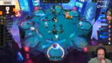 05:46:25In der Endphase des Turniers standen die Platzierungen im Fokus. Der Streamer kam nicht mehr gegen stark gegnerische Godboards an und sicherte sich stattdessen einen 'Top 4' durch sicheres Spielen und HP saven. Die Lobby wurde als 'hart spiken' beschrieben, der Gegner war 'insanely strong'. Auch der Platzierungs-Modus wurde diskutiert, bei dem die Top 4 über den Cup vergeben wurden. Ein Archangel wurde als Lösung für die aktuelle Situation gesehen und die Schwierigkeiten bei der Item-Equipment, insbesondere für die Frontline, wurden angesprochen.