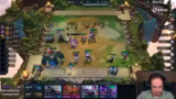 02:47:11Elia erleidet einen schweren Kampf, nachdem er eine riskante Entscheidung traf und seinen Urgot 2 verloren hat. Er droppt auf 15 HP, überleitet jedoch knapp, indem er geschickt Items aufläuft und sein Board optimiert. Trotzdem ist seine Position äußerst prekär. Parallel dazu kämpft Salvi gegen Liris und verliert nach einem sehr knappen Kampf. Er muss damit leider ausscheiden und seinen Traum vom Finaltag begraben, während Elia mit zwei HP überlebt.