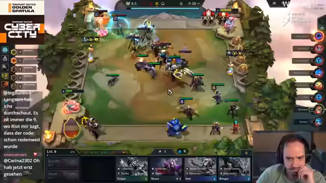 01:47:57Die Lobby-Phase ist von intensiven Kämpfen und ausgefallenen Items geprägt. Salvi trifft früh die Morgana 3 und baut eine starke Frontline auf, was ihm mehrere Siege beschert. Sylvie gewinnt einen hart umkämpften Fight gegen Voltarius, ist aber in späteren Runden den stärkeren Boards der Konkurrenz wie Coinits Boom-Bot-Com nicht gewachsen. Coinit kann nach mehreren Anläufen einen Sieg gegen Kubikson einfahren und damit einen wertvollen ersten Platz sichern. Auch Volta verliert knapp und bleibt damit im Rennen um den Finaltag.