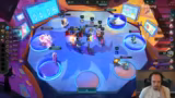 00:00:45Der Stream beginnt mit Begrüßungen und kleinen Gesprächsthemen. Der Streamer gibt an, aufgrund seiner Arbeitsunfähigkeit (AU) nur zeitlich eingeschränkt streamen zu können. Nach einer kurzen Verzögerung wird das aktuelle Spiel gestartet. Es wurden Anfänger-Karten mit Kayle und Xayah gezogen. Die erste strategische Entscheidung betrifft den Einsatz des 'Treasure Hunter'-Traits und das Management von Gold und Goldkisten.