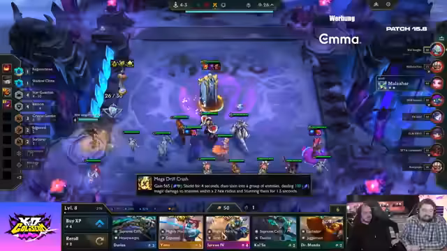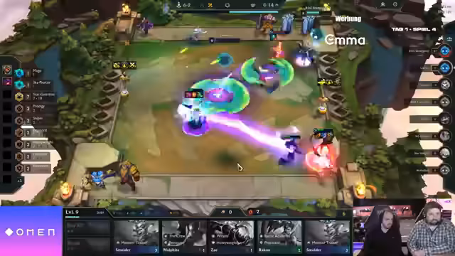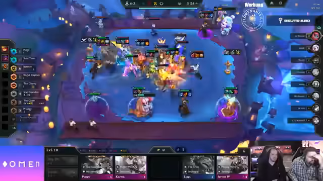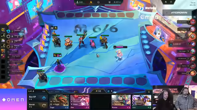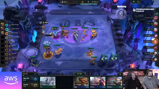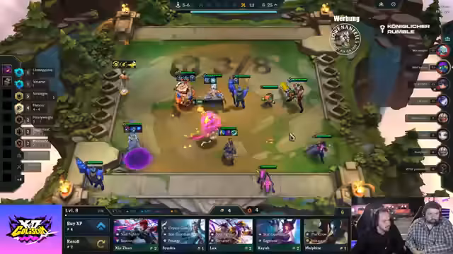 05:47:17Die letzte und entscheidende Runde für viele Spieler steht bevor, insbesondere für den deutschen Vertreter 'Werjangler', der aktuell unter dem Cut liegt und einen First Place benötigt, um weiterzukommen. Auch ein zweiter oder dritter Platz könnte unter günstigen Umständen ausreichen. Die Lobby wird als extrem schwer beschrieben, mit fünf APAC-Spielern und dem starken Europäer 'Benzik'. Es wird auf die Notwendigkeit gut spielbarer Openings hingewiesen, da 'Werjangler' bisher wenig Glück hatte. Die erste Runde beginnt mit einem Lesser Duplicator und zwei Malphites, was die Option für eine Crew-Komposition eröffnet, die jedoch riskant ist. Es wird diskutiert, ob 'Werjangler' die Kombination mit Zaya als bester Frontline wählen oder andere Pläne verfolgen wird. Die Entscheidung, Spellcrit zu slammen, um einen Critical Threat zu erhalten, wird als überraschend empfunden, da die Xayah anfangs wenig Schaden verursacht. Die Warpath-Mechanik wird erklärt: 80 Schaden in Stage 2 und 3 führen zu einem dicken Cashout mit Items und Legendaries in Stage 4, was gute Chancen auf den Sieg bietet. Das Jewel Gauntlet wird in diesem Zusammenhang diskutiert, obwohl es für Zarya nicht ideal ist. Ein Free Win und maximaler Charm durch Standing Champions werden als positiv hervorgehoben.