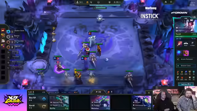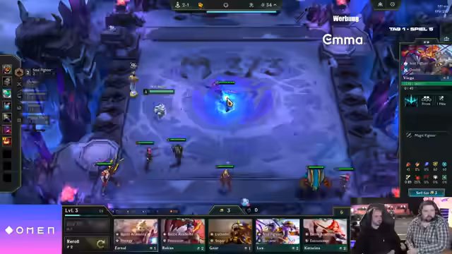 02:15:46Ein Spieler verliert einen Kampf nur knapp mit 8 HP, was die Frage aufwirft, ob er in der nächsten Phase All-in gehen sollte oder abwartet. Die Nutzung von 'Shopping Spree' in Kombination mit Level Up gewährt zusätzliche Rerolls, was für die Komposition entscheidend sein kann. Ein anderer Spieler, Ketux, hat Kog'Maw 3 fertiggestellt, was ihn zu einem gefährlichen Gegner macht. Die Samira mit Infinity Edge und der Volibear werden als Bedrohungen identifiziert. Der Braum spielt eine wichtige Rolle, um lange im Spiel zu bleiben. Ein Spieler levelt auf und spielt Kassadin, um den sechsten Star Guardian und den zweiten Prodigy zu aktivieren. Es wird eine Prodigy-Spatula in Betracht gezogen, aber die Ressourcen fehlen. Ein Fehler im Rolldown führt dazu, dass die Crown of Demacia nicht entfernt wird, was zum Ausscheiden des Spielers führt. Die Lobby ist extrem knapp, und ein Spieler namens Dehua macht große Fortschritte. Ein Spieler hat Darius 3 fertiggestellt, was ein ekliger Gegner für Katarina-Kompositionen ist. Die Crown of Demacia auf einem Tank wird als Rarität und potenziell schlechte Entscheidung beschrieben. Die Kombination aus Amana Zane und Dawn Core mit Living Forge-Artefakten und einem Prodigy-Emblem macht eine Heavyweight-Komposition extrem stark. Der Streamer gibt einen Shoutout an seinen neuen Partner Emma, der Matratzen, Kissen und Decken anbietet. Mit dem Code 'Johnny5' können Zuschauer 5% sparen. Die AirGrid-Technologie und verschiedene Produkte werden beworben, wobei der Streamer seine persönlichen Erfahrungen teilt.