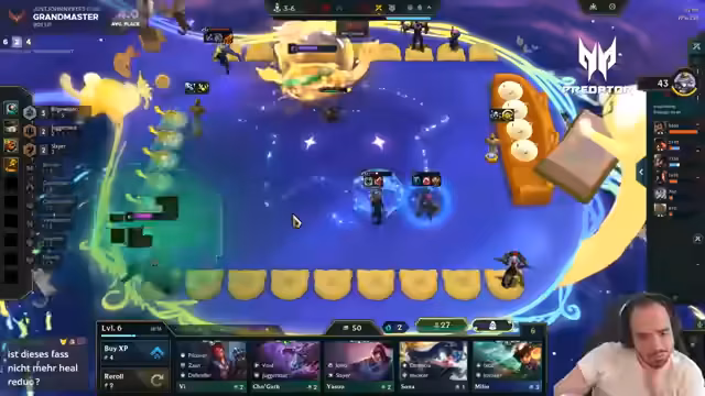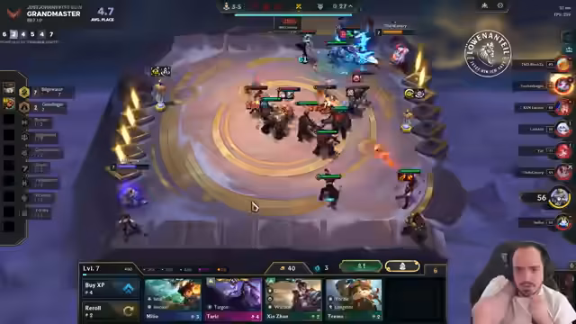 03:59:56Der Streamer erleidet eine Serie von fünf Niederlagen hintereinander und verliert dadurch seinen 'Grandmaster'-Rang in der Rangliste. Er äußert große Frustration über das Pech im Spiel, obwohl er teilweise sehr reich an Gold war und gute Boards hatte. Er nimmt Bezug auf andere bekannte Spieler wie 'Descendant' und 'Toxic Fitzerman', was den professionellen Bezug zum Spiel verdeutlicht. Trotz seiner Frustration und des Wunsches, den Stream abzubrechen, bleibt er bei seinem Vorhaben, weiterzuspielen, solange er nicht den letzten Platz belegt.