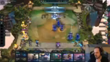 00:12:16Das gemeinsame Gameplay beginnt. Die Streamer interagieren intensiv über den geteilten Chat, tauschen sich über ihre Builds, Items und Units aus und helfen sich gegenseitig bei strategischen Entscheidungen. Es werden Einheiten wie Loris und Zahin stark gelobt. Eine technische Besonderheit ist, dass der Streamer Brücki erlaubt, seine Kamera für das finale Video zu nutzen, was er als wertvollen Mehrwert ansieht. Sie diskutieren auch über das Spielverhalten und fordern den Chat auf, feedback zur Veröffentlichung zu geben.
