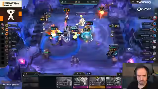 00:46:22Der erste Tag der Qualifikation endet mit einem hervorragenden Ergebnis für die deutschen Vertreter. Löscher sichert sich den ersten Platz, Salvi wird Zweiter und Blizz landet auf dem sechsten Rang. Weitere nennenswerte Platzierungen gehen an Drupas (zweiter) und Solo (dritter). Streamer Johnny hebt insbesondere die mutige Augment-Entscheidung von Löscher hervor, der 'Flexible' anstelle des 'Exotec'-Emblems wählte und damit ein starkes Board baute. Die nächste Folge des Streams ist für 19 Uhr auf dem Zweitkanal angekündigt.
