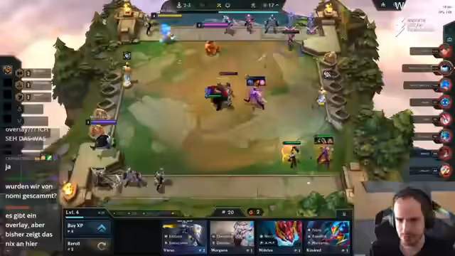 00:17:44Nach einem starken Start durchstehen alle drei deutschen Spieler Löscher, Salvi und Blizz die Anfangsphase ungeschlagen. Sie profitieren davon, sich in den ersten Runden nicht zu treffen, was ihre Lebenspunkte schont. Insbesondere Löscher und Salvi präsentieren sehr solide Boards. Beiden steht eine Level-7-Entscheidung bevor, die sie jedoch beide nicht riskieren. Stattdessen treffen sie sich in einem Fight und müssen sich gegenseitig ihre T-Streak nehmen, was für beide ein Verlust ist.