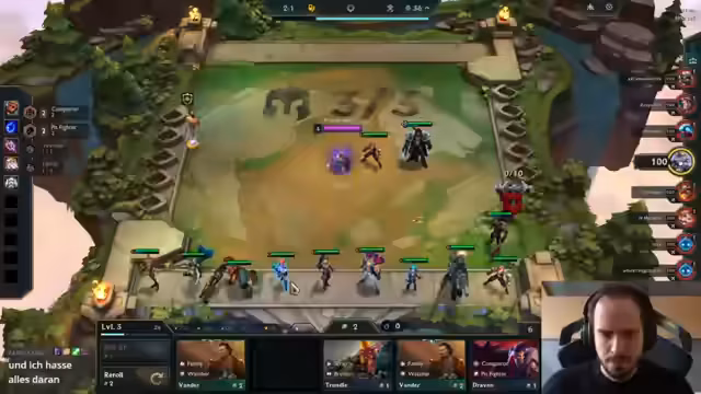 00:32:43In einer entscheidenden Runde erreicht der Streamer einen massiven Durchbruch, indem er einen Swain 3-Star sowie einen Gangplank 2-Star auf dem Board positioniert. Seine Anomalie für Gangplank, die ihm 4000 Magic Damage verleiht, wird als der entscheidende Faktor für den Sieg angesehen. Das Spiel endet mit dem Sieg über einen Gegner mit Jace 2 und Warwick. Der Streamer beschreibt diese Runde als einen der schönsten und krassesten Bangers, die je im Stream zu sehen waren.