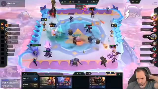 01:09:19Nach dem Sieg wendet sich der Streamer wieder neuen Spielen zu, wobei er den verpassten Sieg im ersten Game als 'stressig' und 'verkackt' bezeichnet. Er beginnt ein neues Game mit einem Ionia-Öffner und konzentriert sich auf einen Weg-Sona-Jinx-Plan. Nach einem frühen Verlust pivotiert der Streamer zu einem Ionia-Reroll, fokussiert sich auf Junara und Ari, und entscheidet sich für ein Triple Eco-Augment. Trotz schwieriger Rolls und einer suboptimalen Item-Base stabilisiert er sich und gewinnt die Runden.