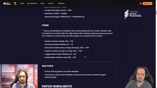 02:40:23Der Stream beleuchtet die drastischen Nervs bei verschiedenen Emblemen. Bruiser und Demacia Embleme verloren stark in der Frühphase, während das Invoker Emblem durch weniger AP-Gain geschwächt wurde. Dies war eine direkte Reaktion auf die Dominanz von Aurelion Sol. Auch das Juggernaut Emblem erhielt weniger Resistenzen. Die Auswirkungen auf die Meta sind signifikant, da einige Embleme nun weniger First-Picks sind und sich in Stärke mehr angleichen, was die Meta zu diversifizieren scheint.