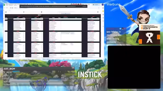 00:40:23Der Streamer interagiert intensiv mit dem Chat, dankt Followern und thematisiert die Organisation der Turniere. Er spricht über die Herausforderungen, sowohl ein breites Publikum von Anfängern bis zu erfahrenen Spielern zu bedienen, als auch die administrative Zusammenarbeit, wie das Aktualisieren von Ergebnis-Tabellen. Er wünscht sich eine schnellere Aktualisierung der Turnierergebnisse.