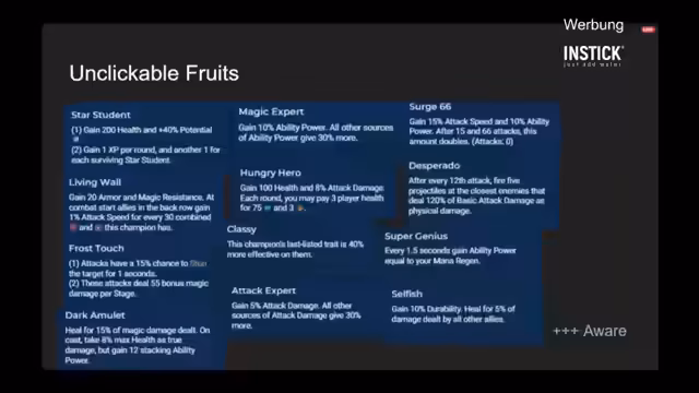 04:22:01Ein zentraler Punkt der Diskussion ist die starke Diskrepanz in der Stärke zwischen Clickable Fruits und den neuen Mods. Während die Mods wie Gwen mit 60% Bonus True Damage oder Lee Sin mit Ultra Stands als extrem überlegen gelten, werden die Fruits als weitgehend unbalanciert und schwach eingestuft. Hungry Hero wird explizit als „viel zu schlecht“ bezeichnet, da man zu viel Gesundheit opfern muss für wenig Nutzen. Es wird empfohlen, sich der aktuellen Meta-Balance bewusst zu sein und Fruits nur in absoluten Nischenfällen zu nutzen.