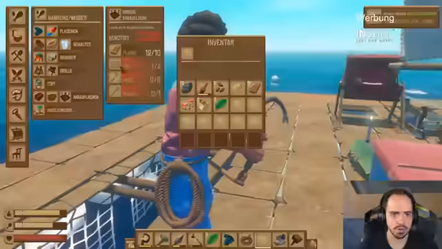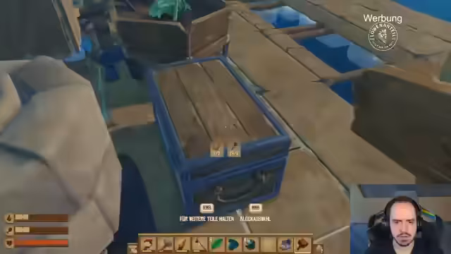 01:41:06Die Protagonisten versuchen, mit ihrem Rettungsboot eine Insel anzusteuern, stoßen aber auf Schwierigkeiten, da das Boot nicht in die gewünschte Richtung fährt. Auf dem Floß selbst wird am Bau-System gefeilt; insbesondere das Verständnis für den Bau von Säulen und Treppen bereitet Probleme, was zu Frustration führt. Der ständigen Hai-Gefahr wird durch verschiedene Strategien begegnet, während gleichzeitig das Sammeln von Ressourcen wie Holz und Palmen Priorität hat.