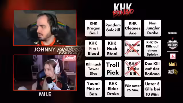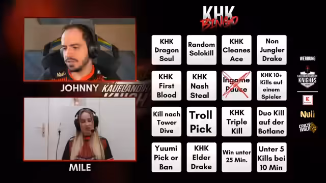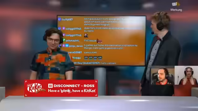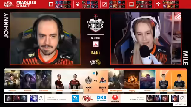 05:44:35Der Stream betont die enorme Wichtigkeit des aktuellen Spiels. Es ist der erste Matchball für Rossmann, um sich für die EMEA Masters zu qualifizieren, und für die Hangry Knights ist es ein Comeback-Game, um die Series offen zu halten. Das Spiel wird als extrem angespannt beschrieben, mit nervösen Fehlern der Spieler, insbesondere von Venou. Es besteht die Hoffnung, dass der erfahrene Coach Tianan stabilisierend wirken kann. Ein Hardware-Problem bei Nice Guy Ben führt zu einer unvorhergesehenen Pause und erfordert eine Neubewertung der Spielsituation nach dem Wiedereinstieg.