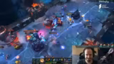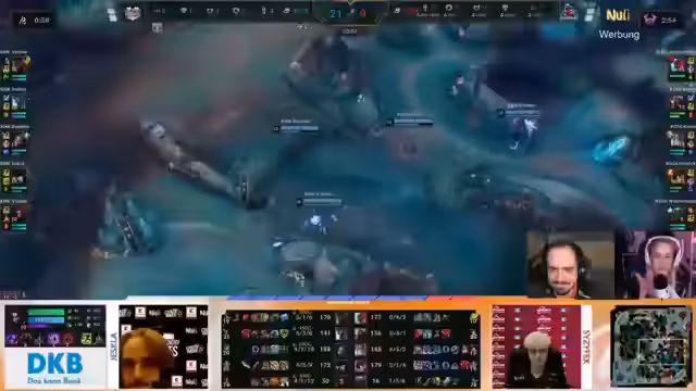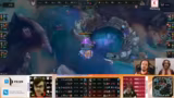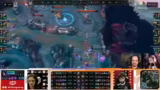 05:23:19Der folgende Kampf endet in einer völligen Niederlage (5-0-Trade) für das Team. Die Schadensausbeute der Gegner ist dermaßen hoch, dass selbst ein Ausweichen der verbleibenden Spieler nicht möglich ist. Diese Niederlage zwingt das Team in seine Base und öffnet den Weg für die Gegner zum Matchpoint. Die Zusammenfassung des Spiels offenbart, dass der Draft ein One-Trick war, der sich in der Praxis nicht durchsetzen ließ, vor allem aufgrund der unüberwindbaren Cassiopeia.