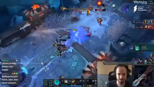 00:02:04Während des Streams unterhalten sich die Streamer über verschiedene Themen. Sie diskutieren über verschiedene Filme wie 'Herr der Ringe', 'Police Academy' und 'American Pie', wobei der unterschiedliche Altersk der Filme thematisiert wird. Auch über Humor wird gesprochen, wobei sich beide einig sind, dass ein gewisses pubertäres Vorhandensein bei ihrem eigenen Humor gegeben ist. Auch der Weg, wie sie einst mit League of Legends angefangen haben, wird erwähnt.