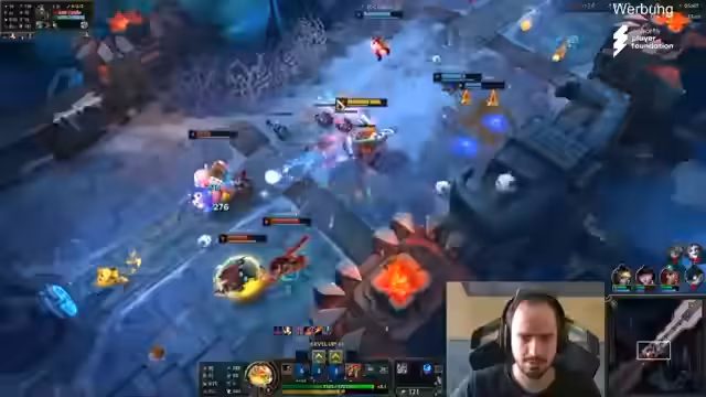 05:21:46Ein entscheidender Kampf um die Seelenspur des Drachen verläuft für das Team katastrophal. Die Trennung der Spieler über die Map führt dazu, dass der Erdrachen verloren geht, ohne dass der Feuerteufel kontrolliert werden kann. Cassiopeias Fähigkeit, Schaden zu tanken und mit ihrer Ultimate zu entkommen, wird als bodenlos beschrieben. Das verlorene Objiv führt direkt zu einer Situation, in der der Feuerteufel die Türme bedroht und das Team zum Rückzug zwingt.