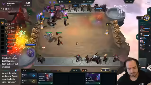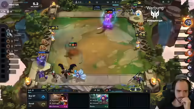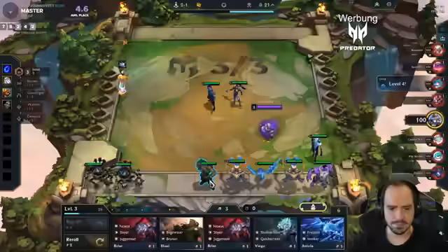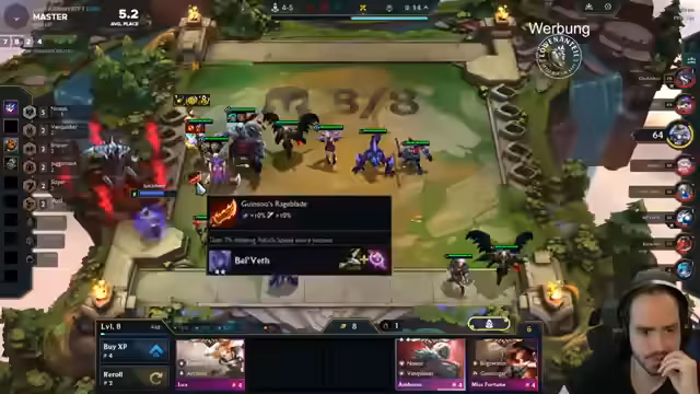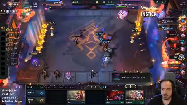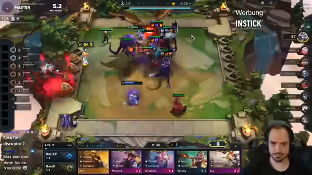 00:09:11Der Streamer kämpft mit dem Early-Game, insbesondere mit einem schlechten Start und fehlenden Items für Kiana. Er bemerkt, dass ohne Milio oder ohne Items für die Backline die Fights sehr schwer zu gewinnen sind. Trotzdem bleibt er bei seinem Plan und versucht, durch gezieltes Rollen und Scouting das Board zu verbessern. Er kritisiert sein eigenes Play, das zu einem 'harten Start' geführt hat, und muss sich mental resetten, um weiterzuspielen.