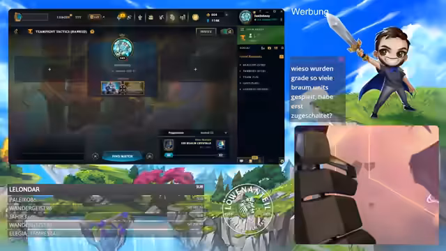 03:07:57Die Aufmerksamkeit verlagert sich auf die Analyse des Start-Boards im nächsten Spiel. Der Streamer identifiziert einen starken Ionia-Start mit Gold-Regeneration, ist sich aber unsicher über die beste Vorgehensweise. Die deutsche Lobby zeigt ein klares AD-Schwerpunkt-Bild. Überlegungen zur optimalen Rolltiefe und zur frühzeitigen Freischaltung bestimmter Einheiten wie Mundo oder Irelia dominieren die strategische Planung, um einen optimalen Start ins Spiel zu finden.