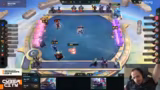 00:53:58Im weiteren Spielverlauf erleben die deutschen Spieler unterschiedliche Erfolge. Solo erreicht drei Siege und baut seine Poppy/Morgana-Strategie weiter aus, während Exo mit seiner Calculated Lost-Strategie um Platzierungen kämpft. Gleichzeitig hat Saivi mit seiner Be Right Back-Strategie Schwierigkeiten. Die Kommentatoren analysieren die Entscheidungen der Spieler und deren Auswirkungen auf den Turnierverlauf. Besondere Aufmerksamkeit gilt den hochriskanten Entscheidungen einiger Spieler.
