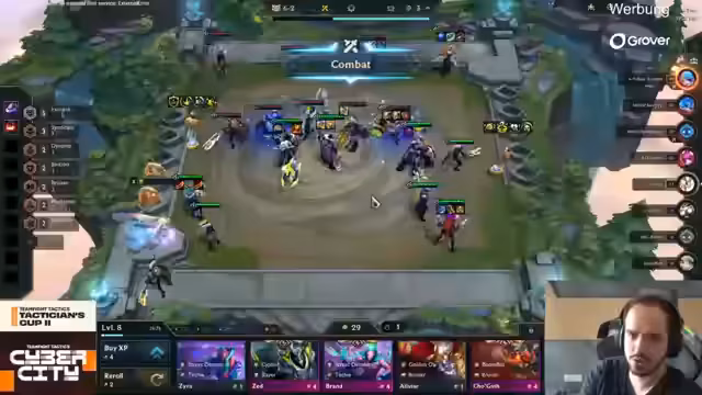00:02:54Der LiveStream beginnt mit einer Begrüßung der Zuschauer und stellt den dritten und finalen Tag der TFT EM Qualifikation vor. Es werden drei deutsche Vertreter genannt: Solo-Gesang, Saivi und Exo, von denen die letzteren beiden an den ersten beiden Tagen noch nicht gesehen wurden. Es folgt ein Rückblick auf die bisherige Punkteentwicklung auf der Leaderboard.