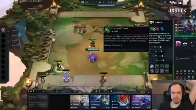 00:02:11Der Stream startet mit technischen Vorbereitungen und ersten Runden im TFT-Spiel. Der Streamer begrüßt die Zuschauer und beginnt mit seinem Grandmaster-Spiel. Er wählt eine Kombination aus Lux, Corrupted und Polaris, wobei er Corrupted 3 bevorzugen würde. Das Spiel beginnt mit einem Gold-Grails-Spieler und zwei Vengard-Haltern.