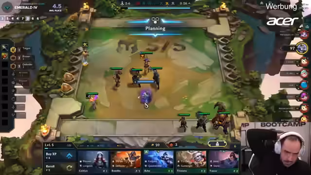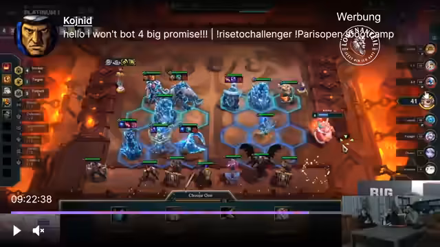 06:48:43Nach einer Serie frustrierender Niederlagen reflektiert der Streamer intensiv über seine Spielweise. Er erkennt, dass er sich zu sehr auf eine einzige Komposition fixiert hat und zu viele erfolglose, hohe Risiken eingegangen ist, anstatt auf ein starkes, bereits vorhandenes Board zu setzen. Diese Erkenntnis führt zu einer strategischen Neuausrichtung. Er beschließt, auf unnötige Pivots zu verzichten und seine Entscheidungen stärker auf die aktuelle Board-Stärke und die wirtschaftliche Lage auszurichten, um stabilere Ergebnisse zu erzielen.