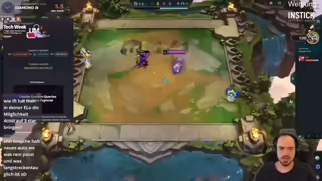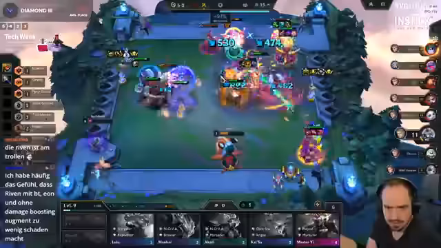 03:12:36Der Streamer analysiert seine Fehler im Spiel, insbesondere im Positioning mit Riven. Er erkennt an, dass er in den letzten Kämpfen zu aggressiv positioniert war. Er erklärt die korrekte Platzierung von Einheiten wie Nunu und Blitzcrank und betont die Notwendigkeit von Mana Rack auf Blitzcrank. Der Streamer zeigt sich unzufrieden mit seinem Spielstil und sucht nach Verbesserungsmöglichkeiten.