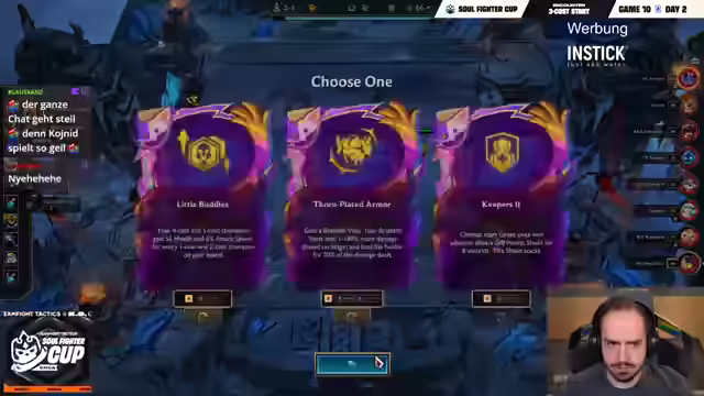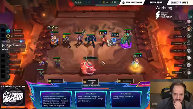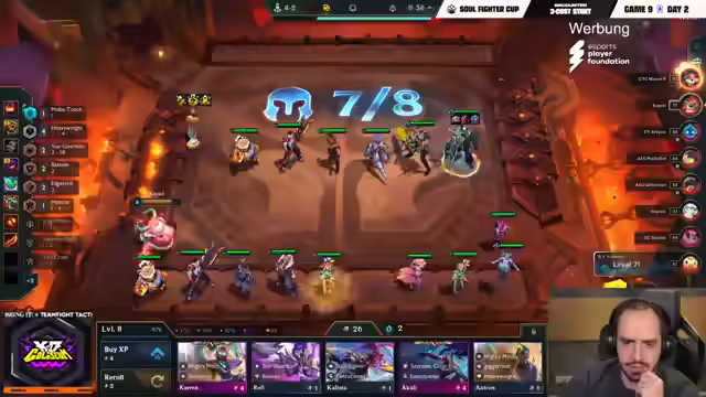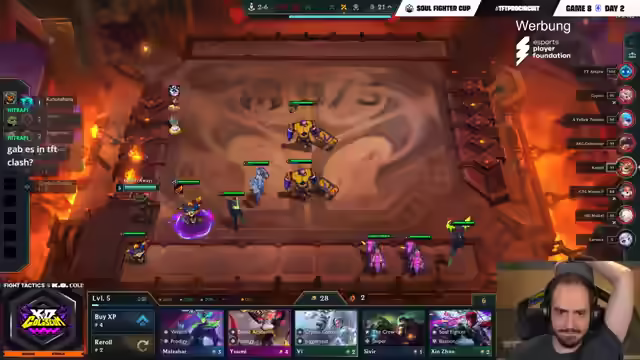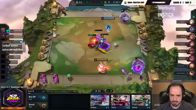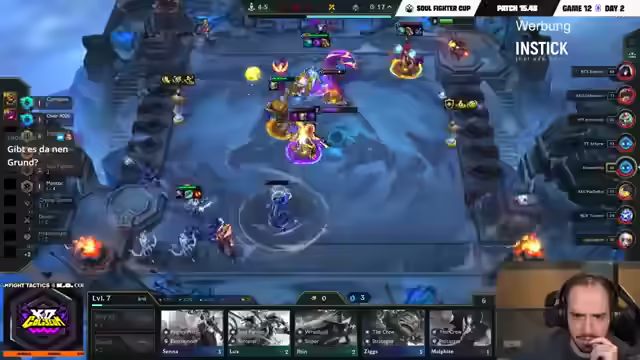 04:29:33Es wird überlegt, für wen man in der nächsten Lobby sein soll, wobei vier Franzosen im Rennen sind: Harbul, Gubustor, Womendef und Experian. Sympathien gelten Gubustor, aber auch Arkhoff wird als Horror angesehen. Experian hat einen großen Punktevorsprung. Paderborn wird trotz Trash-Talk gemocht. Es wird überlegt, ob Tomino durch einen Erfolg Life-Changing Money verdienen könnte. Ein Vergleich mit einem polnischen Streamer in der N.A. zeigt krasse Unterschiede in den Einnahmen. In Deutschland ist das Niveau anders als in Amerika. Die Spanier sind immer krass. Herz, Truide, wird für den siebten Monat gedankt. Lidaran entschuldigt sich für das erste Game. Es wird empfohlen, eine Runde TFT auf dem zweiten Monitor zu spielen. Morgen gibt es EU Coaching mit Nilo. Es wird Secret Content auf Twitch angekündigt. Coined ist schon durch und spielt automatisch morgen. Tomino pingt seine Kale. Es wird die Unit pingen, statt zu schreiben, welche Kopfmann spielen wird, auch smarter, weil du den Gegner ja auch noch Zeit klaust. Es wird überlegt, was womit er für ein Bild im TFT-Overlay hat. Tomino hat alles verkauft wegen 30 einfach. Es wird festgestellt, dass Varus nicht mehr gespielt wird. Aktoff hat keine Star mit den Blades. Mundo wird seit dem ersten Game nicht mehr gesehen. Abagin ist nicht mehr contested. Juggernaut wird relativ wenig gesehen. Es wird festgestellt, dass der beste Spieler dieser zweiten Gruppe coinet ist. Okigom sagt, Starry Knight is strong. Es wird überlegt, ob man den Snack dafür investieren will oder nicht. Es wird über Beer-Jinks gesprochen. Es wird über Executioner Snack gesprochen. Bei Pukiko gibt es einen Ashet und deswegen irgendwie auf einmal Crystal Gambit auf dem Board. Der Wolfsport sieht hervorragend aus. Tomino KFF wird erklärt. Steadfast wird hart geslammt. Es gibt Diskussionen über Items. Es wird überlegt, seinen Win-Strick anzufangen. Crab Brave mit Final Ascent. Das Final Ascent ist so krass, wenn es durchkommt. Die Transition auf 7 ist nice. Es wird überlegt, ob man einfach argumentieren kann. Die Frontline reicht, aber macht ja nix. Nullpointer sagt, gerade wohl ist der King, erneuft jeden mit seinem Ping.