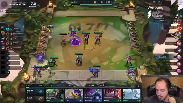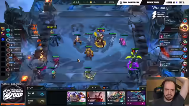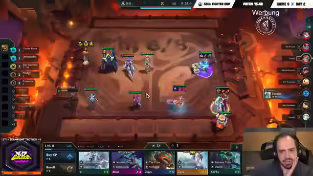 03:06:32Die Situation für Coinit bleibt schwierig. Paderbolt trifft Melfair 3. Double spielt Kale mit exzellenten Items. Coinit muss unbedingt Fights gewinnen, hat aber Probleme. Darius hat magische Hände und findet immer seinen Weg auf das Board. Coinit stellt ein gutes Board zusammen und verfolgt das Star Guardian-Board sehr gut. Es wird über das Trade Web gesprochen und wie dieses Set neu gelernt wurde. Die Kombination aus Star Guardian und Heavyweight eröffnet Optionen. Marcel ist schwer zu schlagen. Double hat Kayle schlecht getroffen und ist in Niemalsland. Gobosteur hat Darius von Anfang an. Volta hat den sechsten Mundo und unendlich Geld. Bobster spielt Kogma-Setup. Cornel hat große Probleme, weil er Star Guardian spielt und es extrem viele Poppys gibt. Er entscheidet sich für Soulfighter oder Juggernauts. Arxho hat keine Chance und spielt für einen Win. Coinit gewinnt einen Fight mit Hängen und Würgen und versucht, eine Top 4 zu erreichen. Marcel ist unfair stark. Coinit leidet. Double ist im Niemalsland fertig geworden. Paderball spielt für den Lobby-Sieg, Gobosteur auch. Kubus steuert Darius 3 an. Pointed gewinnt einen Fight, was wichtig ist, da andere Boards stärker werden müssen. Coinit gewinnt Fights mit Poppy 1 und Jinx 1, was überraschend ist.