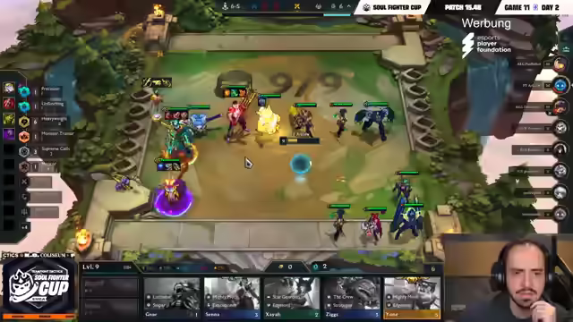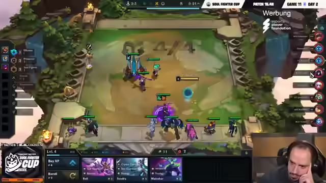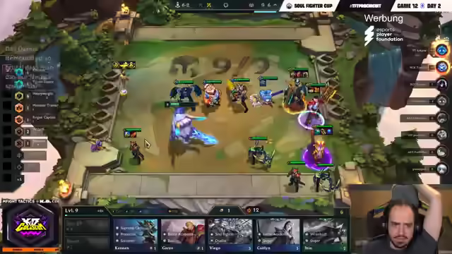 01:13:53Es wird festgestellt, dass man lernen muss, warum Late-Game-Boards nicht zusammengebracht werden können, die gewinnen können. Das Verlieren des Spiels, nachdem man so früh Level 9 erreicht hat, wird als schrecklich empfunden. Es wird bedauert, dass noch viel IP bis zum Cut gemacht werden muss. Das Augment wird als wahrscheinlich falsch gewählt und schlecht gespielt angesehen. Es wird angemerkt, dass das Spielen zu NA-Zeiten kein Vorteil ist. Es wird betont, dass man schlecht im Kontext eines TPC sehen muss, da viele gute Spieler anwesend sind. Es wird festgestellt, dass das erste Spiel von Solo mit Dummy Fire ärgerlich war. Es wird klargestellt, dass es keinen Unterschied zwischen EU und NA gibt, da immer die Hälfte EU und die Hälfte NA sind. Es wird festgestellt, dass EU im Cup siebenmal in den Top 10 war, aber A-Timer in den Top 4. Es wird erwähnt, dass E-Sport-Vereine jetzt doch gemeinnützig werden sollen, aber dies noch durchs Parlament muss. Es wird die Befürchtung geäußert, dass dann wieder gefordert wird, dass Ballerspiele nicht Teil des Ganzen sind. Es wird festgestellt, dass das Misstrauen in politische Töre, was E-Sport angeht, gewachsen ist. Ein gemeinsamer Stream wird angekündigt und die Freude darauf ausgedrückt. Es wird auf die Sound-Einstellungen hingewiesen, die überprüft werden müssen. Es wird die starke Leistung von Coinet hervorgehoben und die Hoffnung geäußert, dass er die Dachfahne ganz nach oben schwenkt. Es wird festgestellt, dass Coinet einen K2-Start hat und ein schönes Zack-Hero-Augment hat.