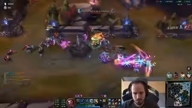 02:39:22Das Team erkannte die Notwendigkeit eines neuen Schlachtplans, um das Spiel noch zu gewinnen. Es wurde überlegt, ob man noch einmal Botlane spielen oder aufgeben sollte. Der Streamer schlug einen riskanten Atakan-Rush vor. Es wurde sogar überlegt, die Accounts zu tauschen, um das Spiel zu gewinnen, und gefragt, ob ein Riot-Mitarbeiter dies genehmigen könnte. Das Team versuchte, den Gegner auszumanövrieren und Druck auf die Karte auszuüben. Nach einem erfolgreichen Spielzug, bei dem ein wichtiges Ziel erobert wurde, wurde die Bedeutung von Teamwork und Koordination betont. Es wurde auch überlegt, wie man die Seraphine des Gegners ausschalten und Teamkämpfe gewinnen kann. Trotz einiger Schwierigkeiten versuchte das Team, das Spiel zu drehen und einen Vorteil zu erlangen. Es wurde auch überlegt, wie man die Türme des Gegners zerstören und Druck auf die Karte ausüben kann.