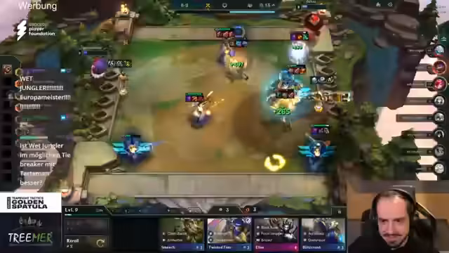 03:36:09Das Finale der TFT-Europameisterschaft startet mit Spannung. Wet Jungler führt mit 29 Punkten, gefolgt von Tatmann mit 27 und Experiment mit 26. Wet Jungler hat aufgrund des Tiebreakers eine vorteilhafte Position, da er auch bei Punktgleichheit Europameister wäre. Kevin Parker ist zwar aus dem Titelrennen ausgeschieden, hat sich aber für die WM qualifiziert, bei der nun zwei deutsche Spieler antreten werden.