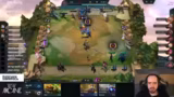 00:55:52Wedgeangler dominiert mit einer starken Tristana-Komposition, die durch ihr Passives Fähigkeiten immer mehr Schaden sammelt und im Kampf gegen den überraschend starken Kevin Parker (vom Game 1) siegt. Die Kommentatoren stellen fest, dass die Positionierung der Tristana entscheidend ist und es ein sehr guter Rückgewinn für Wedgeangler war, der sich dadurch in der Tabelle nach vorne kämpft und erste Plätze belegt.